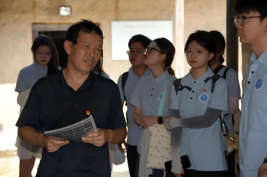 踏入古朴庄重的陈士榘故居,九里阳光社会实践团成员们围聚在陈士榘将军后人、团林中学退休教师陈向才先生的身旁,聆听一场跨越时空的家族叙事。陈向才先生以细腻、真挚的情感,将陈士榘将军跌宕起伏的峥嵘岁月娓娓道来,字字句句饱含对先辈的追思与敬仰,一段段鲜为人知的往事在其讲述中逐渐清晰,带领成员们沉浸式回溯那段波澜壮阔的革命征程。