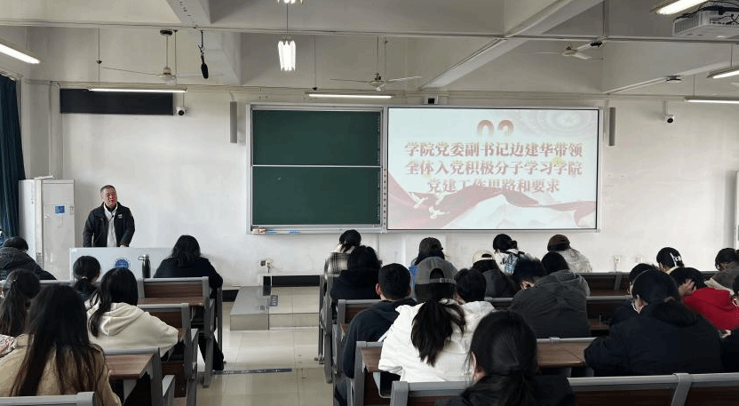 于2025年10月23日12点30分在北综楼404召开入党积极分子培训会议。会议由专职辅导员姜盛为主持,学院党委副书记边建华,专职辅导员单湉艺,兼职辅导员贾奕璇、赵立堃,以及全体学生入党积极分子参加此次培训会议。本次会议主要围绕积极分子理论学习要求,评分细则、工作思路展开,为全体积极分子筑牢信仰之基。
