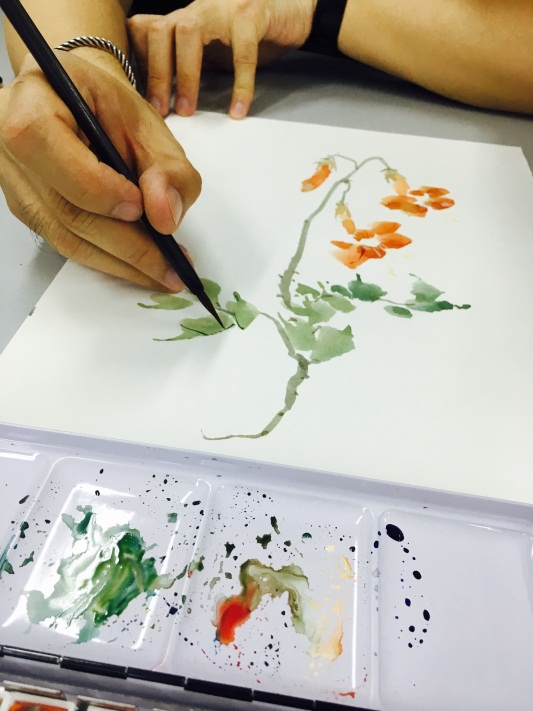进行关于《诗经草木绘》之古风水彩植物手绘技法的讲座。