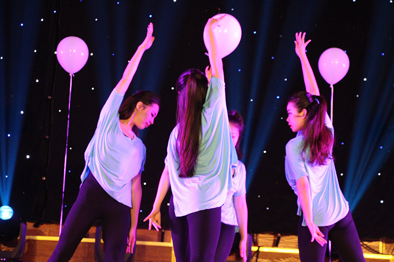 开场一曲《万花谷》将古韵天成演绎的淋漓尽致,展现了东方古典艺术的刚柔之美;独舞《乡愁无边》《卓玛》《傣家小妹》更是展现民族民间舞蹈魅力的同时,更是诠释了四年来舞蹈班的同学们对专业四年积累的点滴;《桃夭》是12级舞蹈班的代表佳作,一个个桃花仙子,含笑舞袖,洋溢着诗意诗情;胶州秧歌《梦里寻他千百度》、蒙古族舞蹈《月狐吟》、傣族舞蹈《灵》与维吾尔族舞蹈《旋旋旋》是全晚的四大亮点,情绪由浅入深,层层递进,音乐时而柔缓、时而欢快,将汉族女孩的甜美、蒙族姑娘的妩媚、傣族少女的柔情和维族女孩的大方呈现得个性鲜明、舞姿伉俪,犹如畅游在中华多元民族文化的大地上;双人舞《同窗》为我们勾勒了校园生活中最青涩的那一抹柠檬味道,令人回味而向往。