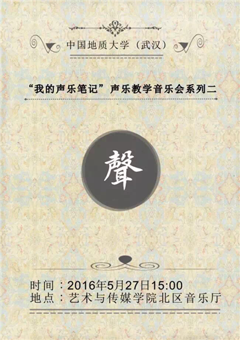 、音乐表演系、“张理副教授声乐教学系列之七——学生独唱音乐会”,源于2009——2012年校级本科《声乐精品课程教学》教学研究项目和2015年湖北省《声乐精品资源共享课程》教学项目(《声乐》是2015年,H小说