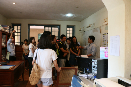 讲座后,热情的萨伟先生带写生组参观了保护中心办公区,介绍中心的运作情况,包括保护区建设的规范,传统建筑、饮食等文化信息库的建立等等。这次难得的讲座使大家有机会较为系统、完整的了解琅勃拉邦世界文化遗产地保护的主要内容。