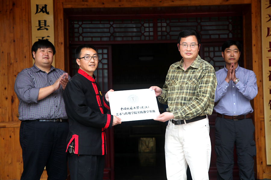 副院长曾健友向百福司镇副镇长授牌。仪式结束后,当地民众进行了精彩的摆手舞表演。