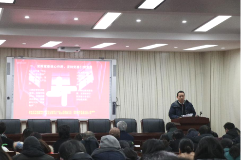 随后,院党委书记郭秀蓉代表学院党委向全体教职工报告“不忘初心,牢记使命”主题教育检视问题整改落实情况。就主题教育中检视出的问题、整改措施、整改进展及成效,逐条逐项向全院教职工做了汇报。按照大会议程,全院教职工对学院领导班子2019年工作进行测评,大会还进行了2019年度学院先进个人表彰。