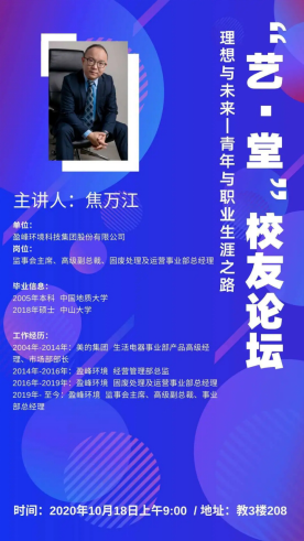 优秀校友、现任上市公司盈峰环境科技集团股份有限公司监事会主席、高级副总裁、固废处理及运营事业部总经理焦万江先生,莅临南望山校区教三楼208室,为地大学子开展以理想与未来为主题的讲座。H小说