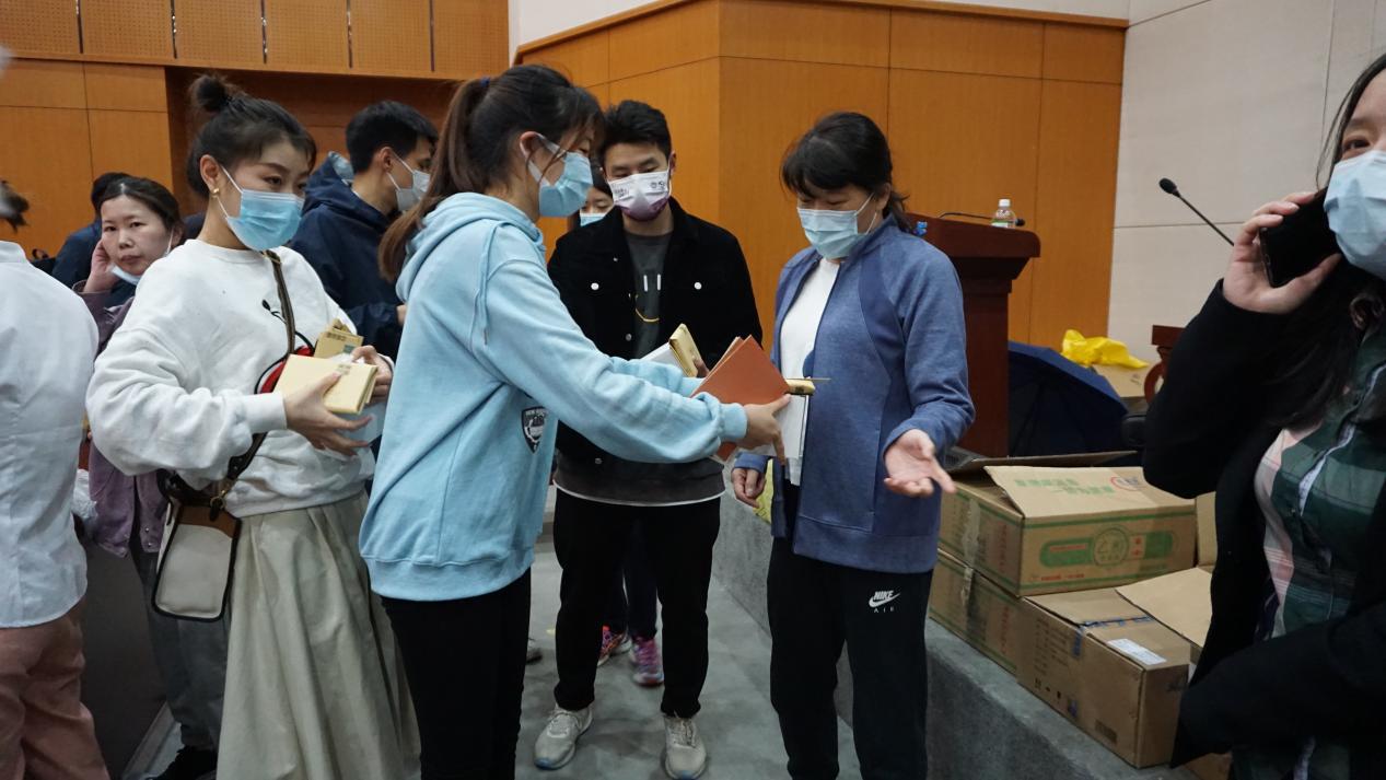 大学生创新创业团队“地心引力”的十几名成员在核酸检测即将结束之际,给北区及东区的医护人员和志愿者、保安师傅们送上地大同学们手写的感恩贺卡、100余套的地大特色文创产品以及奶茶饮品,向他们表达了一份敬意和感激。在天气湿热和风雨交加的天气环境下,地心引力团队希望这个小举动能让他们感受到地大学子的温暖和情怀。
