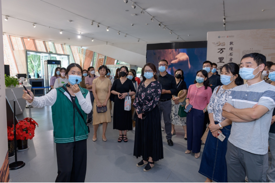 随后,老师们跟随讲解参观了石窟出土文物以及敦煌工作者的考古纪实特展。上世纪40年代,敦煌石窟还是一片不毛之地,从最近的城内抵达此地也需花费一天一夜。新中国成立后,从年长至年轻的考古工作者将自己的生命和热情奉献于这片土地。1961年,莫高窟、西千佛洞和榆林窟被国务院公布为第一批全国重点文物保护单位。1987年,敦煌莫高窟被联合国教科文组织世界遗产委员会批准列入世界文化遗产名录。敦煌石窟的艺术价值被源源不断的发掘出来,滋润着一代又一代的年轻人。