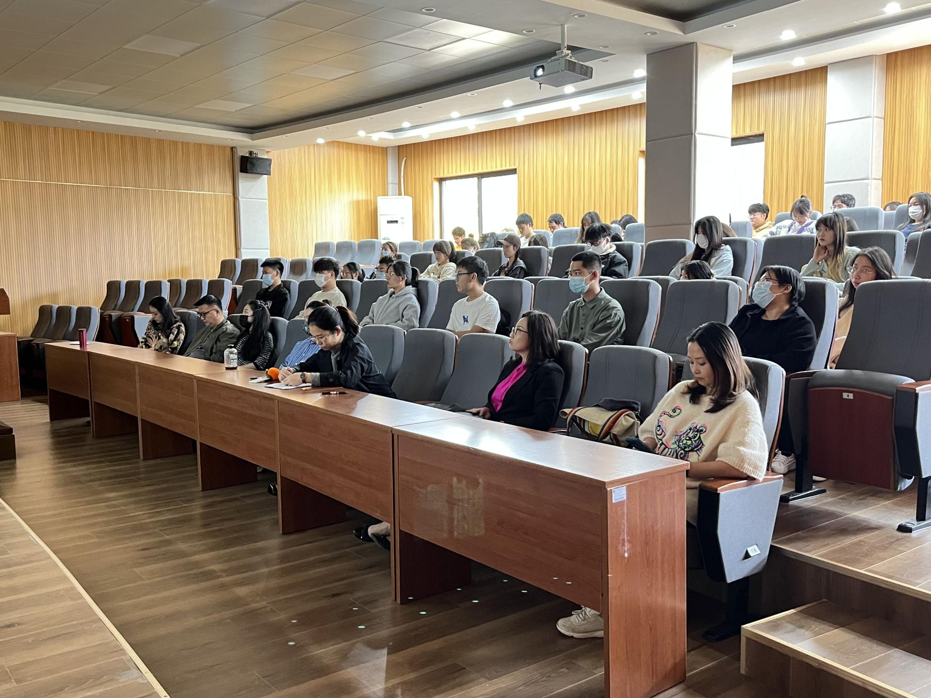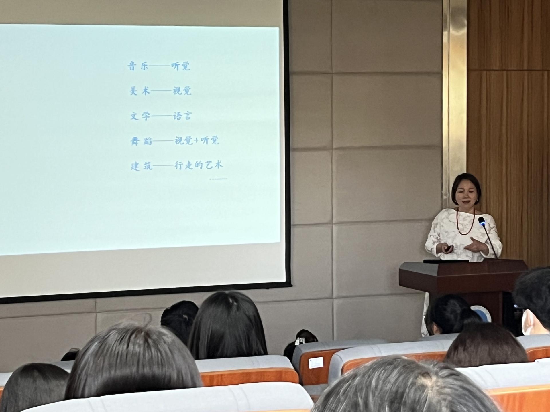 建设七十周年,更好的推进美育教育建设,培养高素质人才,应艺术与传学院周黎副教授邀请,武汉理工大学朱梅梵教授做客学校“七轶荣光,筑梦未来”学术讲座,做了题为《学艺术为什么》的主题讲座。讲座于2022年11月3日下午14:00在本学院1104学术报告厅举行,学院党委书记郭秀蓉同音乐系的教师与同学们一同聆听了讲座。