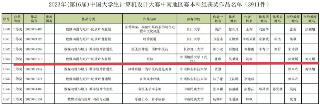 广播电视学本科生张璇、吴秉谦、汤雨创作的纪录片《根脉》(指导老师尚媛媛、刘定耀)在数媒动漫与短片-纪录片专业组类别中荣获二等奖!