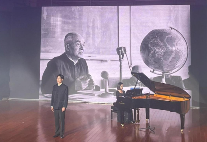 学生的吴恺文(讲述人)、王艺璇(钢琴伴奏)现场表演了配乐朗诵《大地之光》。