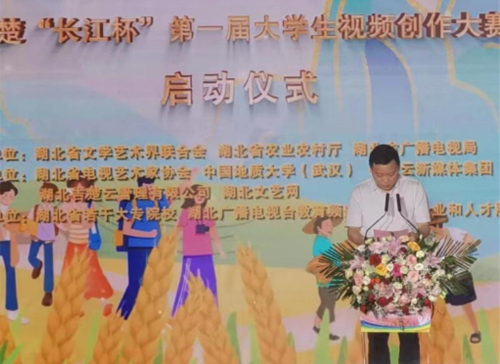 党委副书记王林清致欢迎辞,他谈到:“大学生们要紧跟时代发展步伐,用镜头记录中国,展示湖北改革发展之变;要以人民为中心,根据本次大赛的要求和主题,用有温度、有内涵、有深度的作品讲好荆楚故事;要将小我融入大我,树立服务国家、服务基层的志向,让青春在奉献中绽放绚丽之花!”
