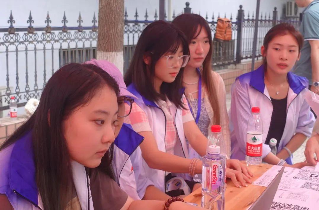 ”的牌子引导着新生去到迎新摊位,随后在老师们的协助下完成学籍信息录入以及个人资料的收集等,并耐心回复了家长们有关在校学习和生活的各类疑问。