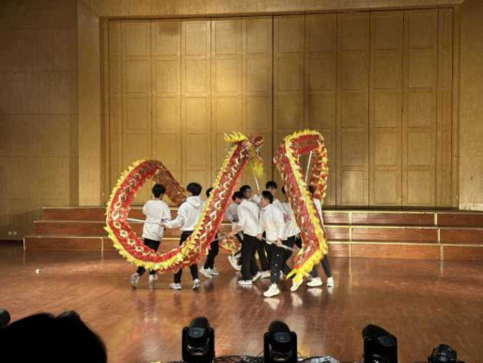 锣鼓声声除旧岁,招财纳福醒狮来。大学生龙狮团带来的表演《龙狮献瑞》率先登场,舞台上,队员们身着节日盛装,一条祥龙则在空中盘旋,仿佛要破空而去,激情饱满地展示着传统舞龙舞狮技艺。在这场充满力量与激情的表演中,我们感受到了传统文化的魅力,观众们欢呼声不断,纷纷为大学生龙狮团的精彩表演点赞。