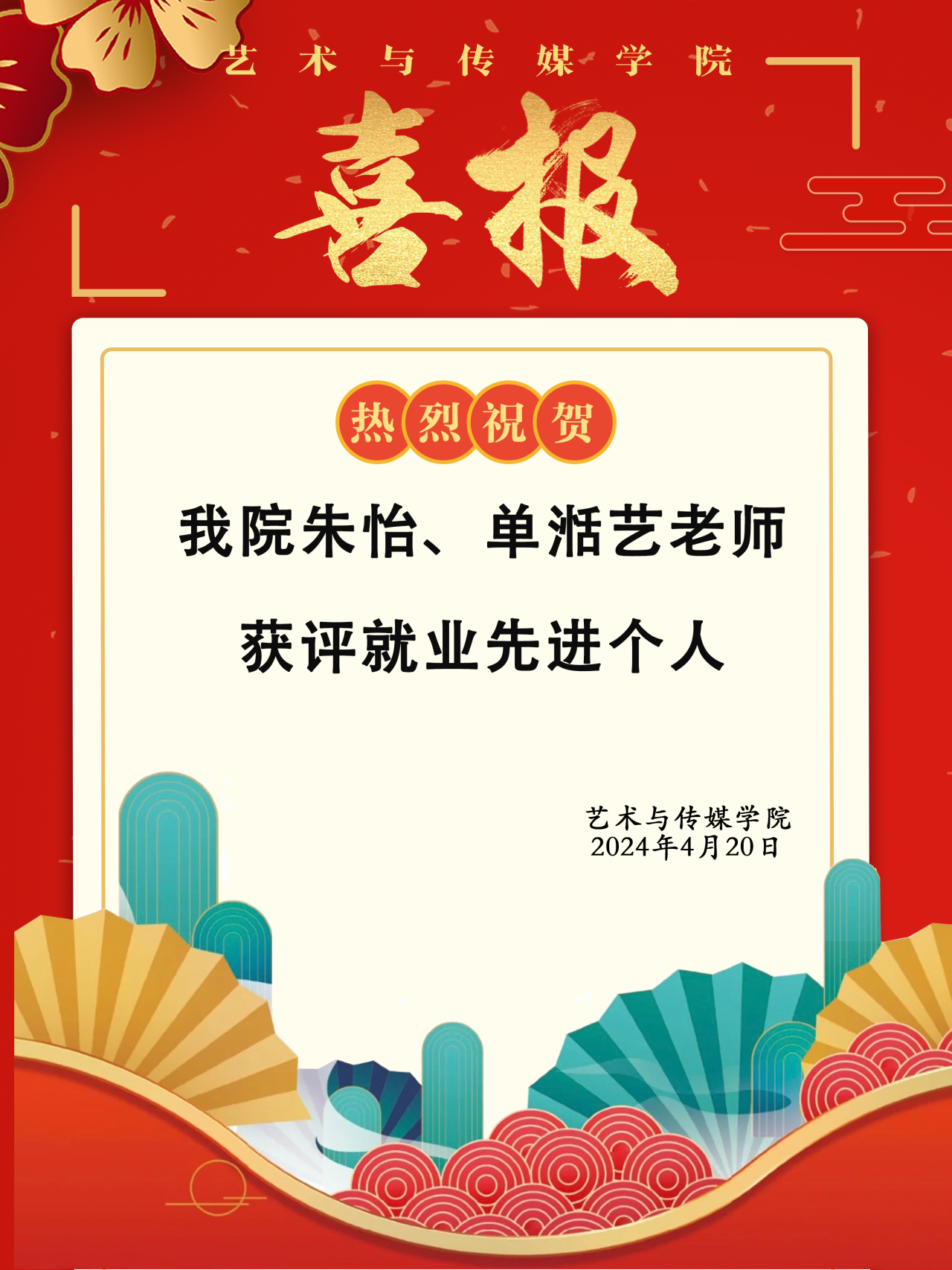 喜报 | 热烈祝贺H小说 朱怡、单湉艺老师获评就业先进个人!