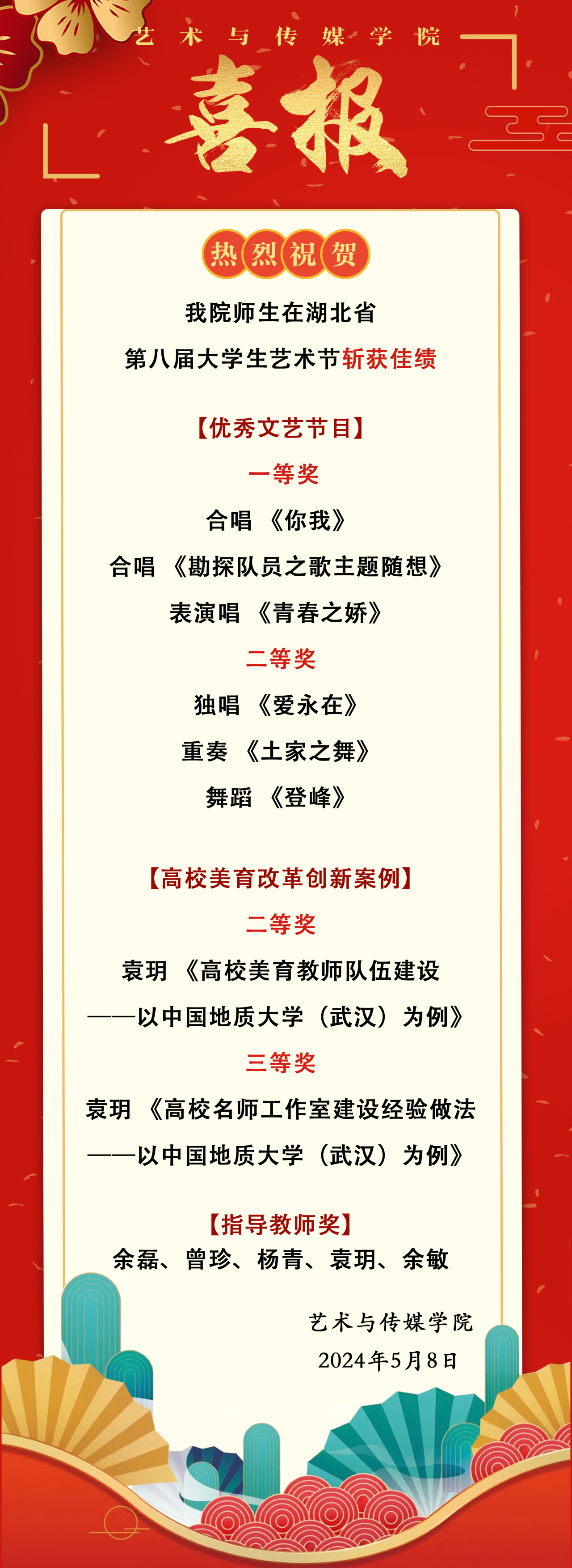 多部作品斩获湖北省第八届大学生艺术节多个奖项,不仅是对专业教学成果的肯定,更是学校美育工作在省内的一次成功展示。未来,H小说