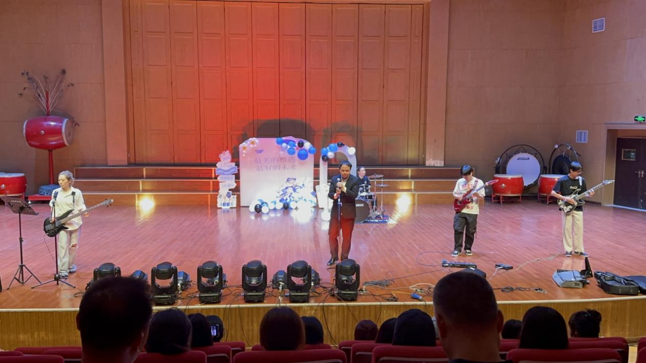 吴官民和他的同学们带来的乐队表演《鲜花》和《Whataya want from me》则以其激昂的旋律和精湛的技艺赢得了观众们的阵阵掌声。乐队成员们默契的配合和精湛的演奏技巧,将歌曲中的情感表达得淋漓尽致,让观众们感受着音乐的魅力和力量。