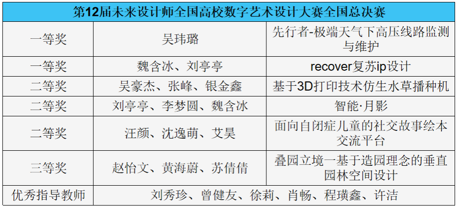 师生凭借创意与设计实力,斩获十余项奖项。其中,学生作品荣获一等奖2项,二等奖3项,三等奖1项;同时H小说