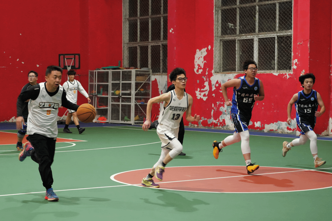 男篮与公共管理学院二队展开巅峰对决。前两节双方比分胶着,艺媒队员凭借默契配合与顽强防守紧咬战局,每一次突破、抢断都点燃全场热情。