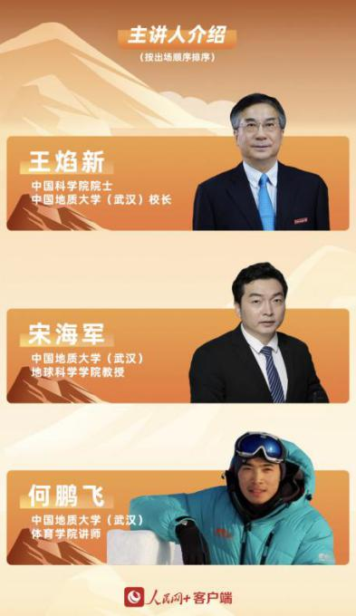 (武汉)校长王焰新为同学们诠释了登顶珠峰对我国的重要意义以及一代代攀登者追求的攀登精神内核;地球科学学院教授宋海军结合亲身科研经历鼓励同学们以兴趣为导向不断探索学习;体育学院青年教师何鹏飞为我们讲述他征服珠峰的感人故事,激励同学们勇于追梦、勤于圆梦。