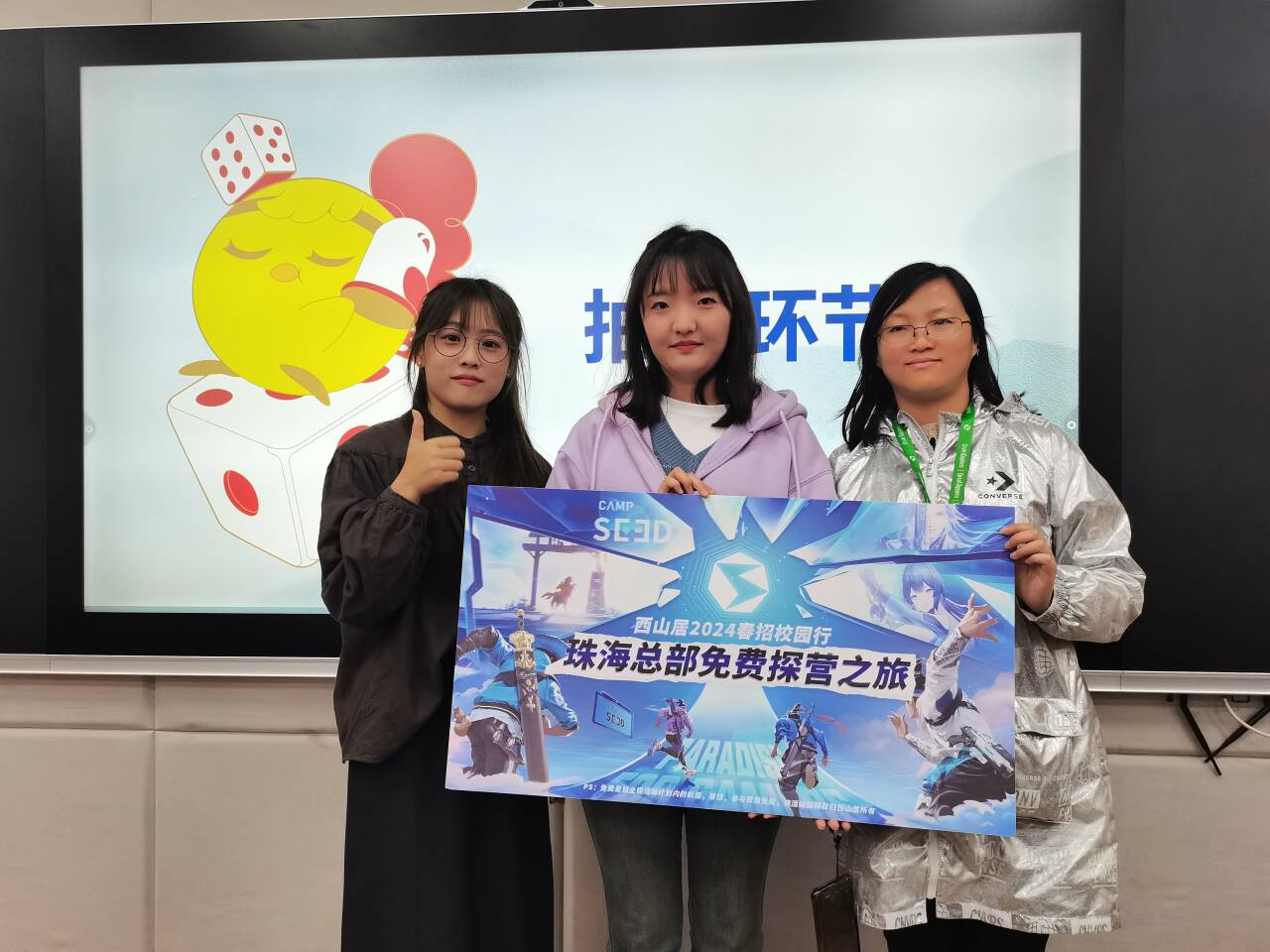 最后,二位主讲人与同学们进行了十分充分的交流与互动,现场进行了抽奖与互动答疑活动,两位同学获得面试直通卡和珠海探营之旅,同时主讲人对同学们提出的问题进行了针对性的解答和建议。