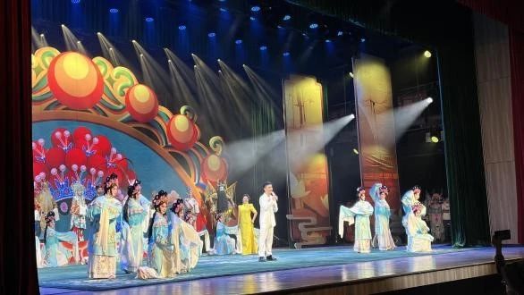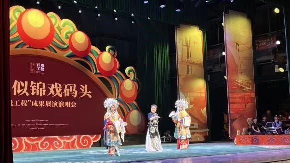 晚上,师生乘车来到了武汉市人民剧院,观看《繁花似锦戏码头——“百戏工程”成果展演演唱会》。“百戏工程”是武汉市戏曲传承发展研究中心、武汉汉剧院、武汉楚剧院等单位于2020年共同启动的项目,旨在推动戏曲传承保护工作迈上新台阶。同学们在现场观看了汉剧《下河东》《收痨虫》,楚剧《访友》《庵堂认母》等经典选段,领略了戏曲艺术的魅力,更加深刻地理解了“百戏工程”文化传承的意义与价值