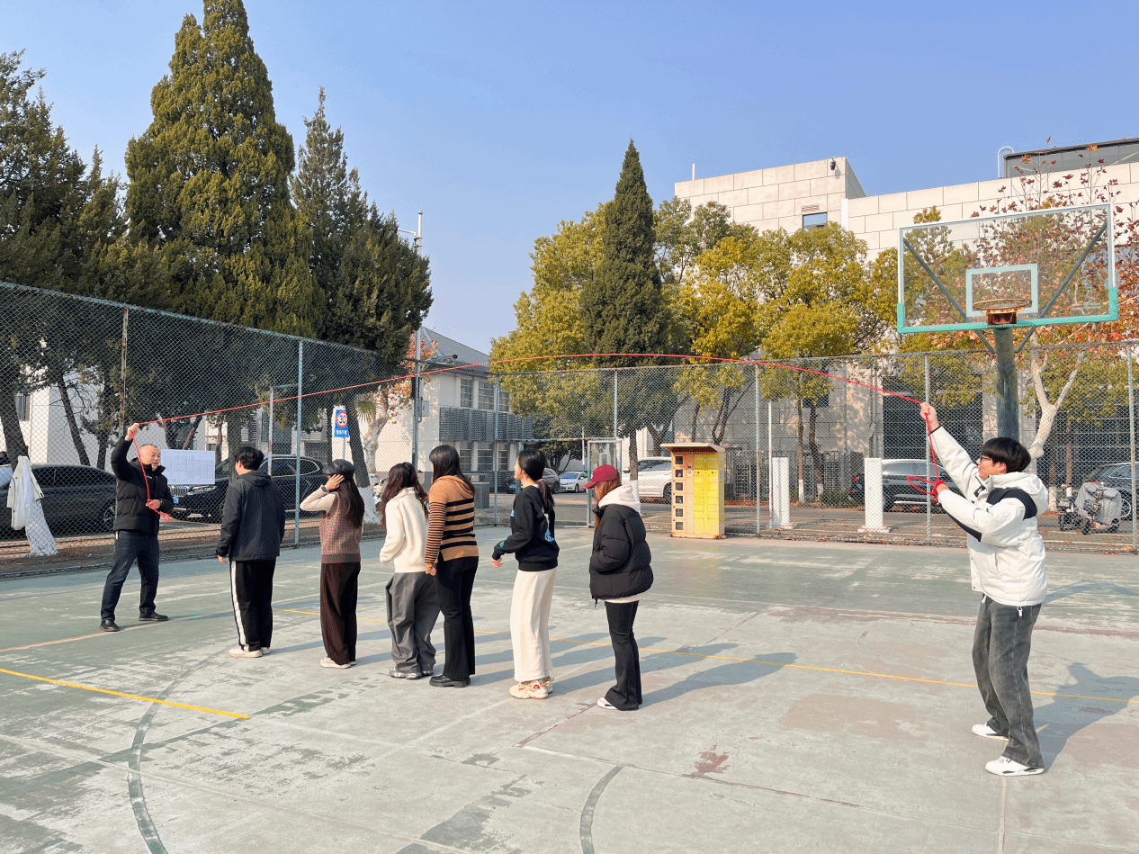 于北区室外篮球场举办了集体跳绳比赛。此次比赛共有来自学工组辅导员、学生会、研究生和本科生的七个队伍参与,学院党委副书记边建华、团委书记单湉艺、专职辅导员曾戈晖以及全体兼职辅导员到现场观赛。