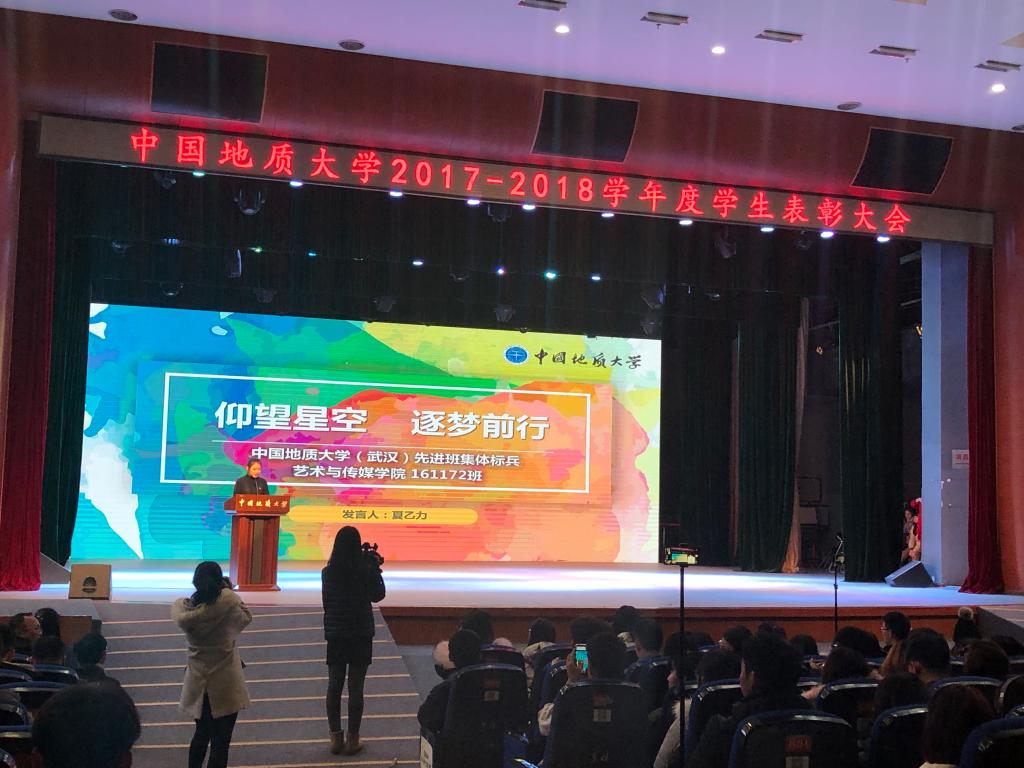 本科2017级161172班班长夏乙力同学作为年度先进班集体标兵获奖班级代表,以《仰望星空,逐梦前行》为题做大会主题发言,分享了H小说