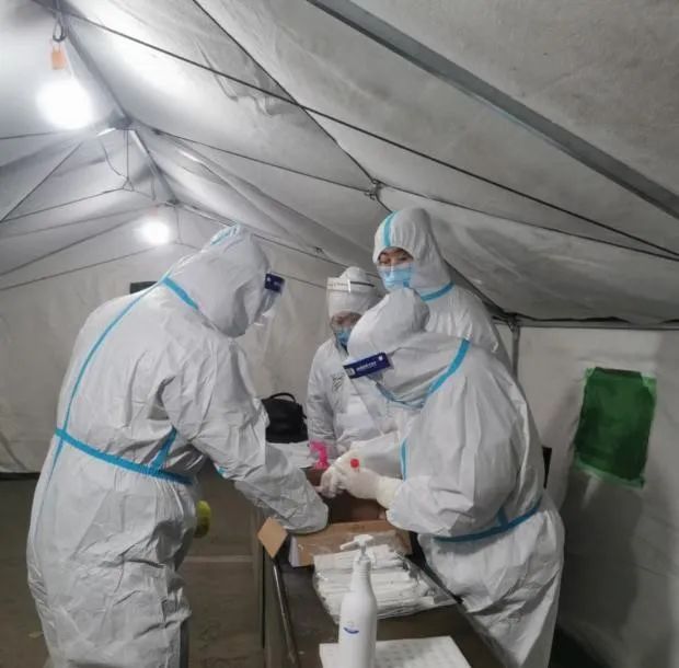 2022年寒假初,志愿者陈炳伊的家乡石家庄爆发了新冠疫情。为了给家乡人民奉献自己的力量,她在网上自行购买了防疫专用的防护服和护目镜,在社区安排的第三次核酸检测中报名成为了志愿者,一天之内一共协助医护人员采集了612个居民的样本。