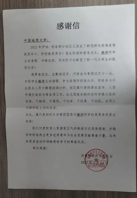 2021年暑假期间,艺媒学子杨洋在老家的时候正好碰上河南遭遇洪水和疫情的双重考验,主动报名成为志愿者,为抗洪抗疫出一份力。今年寒假期间,她又回到老家主动报名志愿者,协助返乡人员进行大数据分析、人居环境打造等,“在这期间我学到了不少东西,也交到了许多朋友,能够为家乡尽自己的一份力量感觉特别开心。”