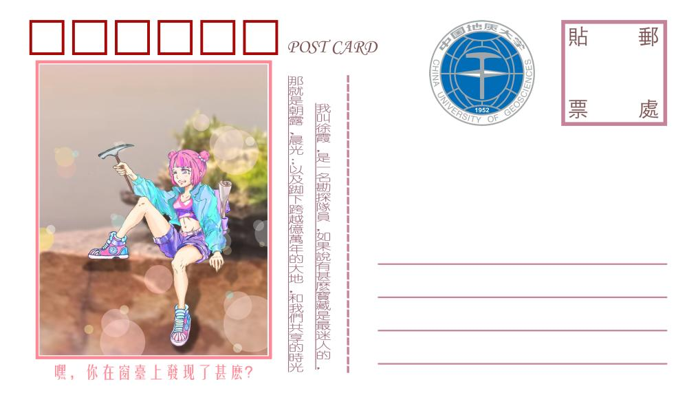 该明信片系列色调温和典雅,两位作者用善于发现美的眼睛,捕捉校园内的美景。地大的美藏在师生平常的生活里、藏在随处可见的角落里,更藏在每个地大人的心里。希望这些小小的美好能给更多人力量!