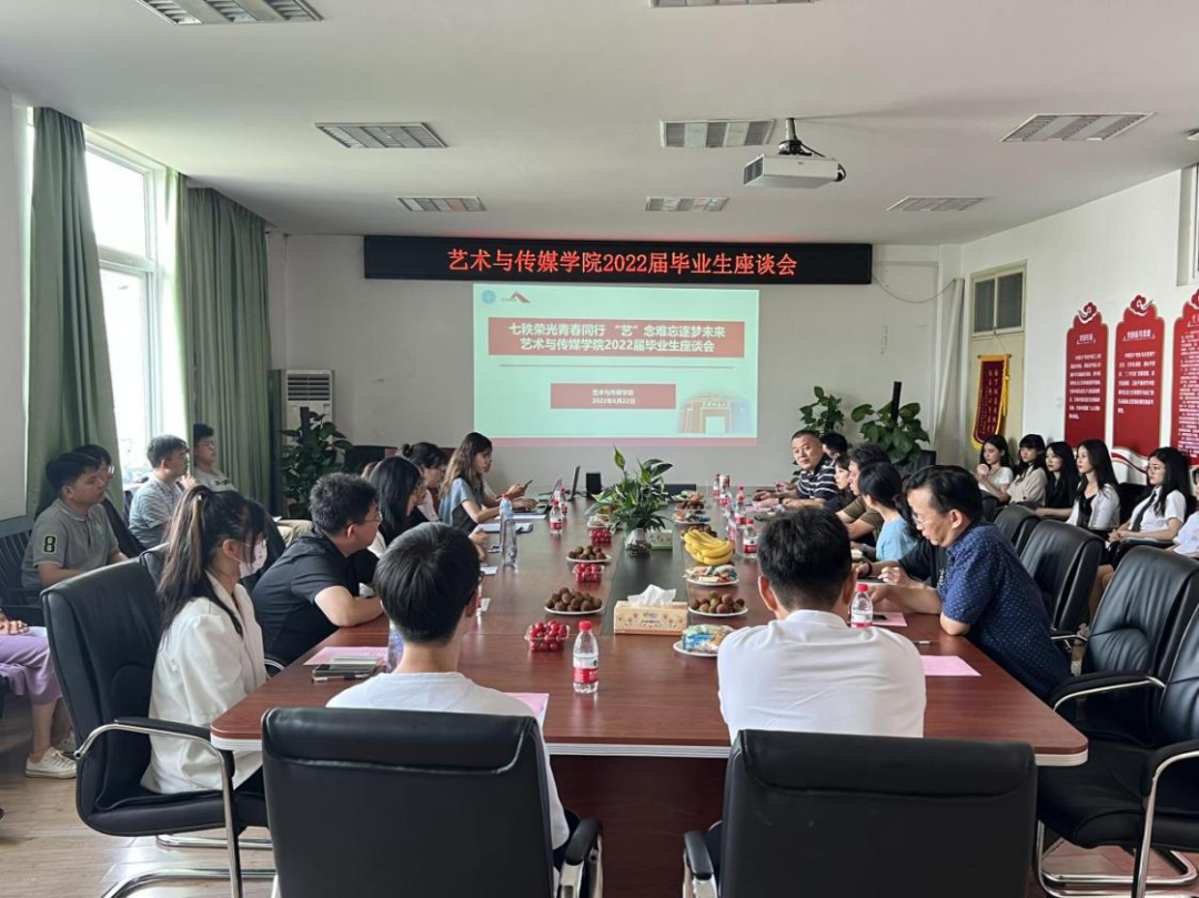 在1209会议室召开2022届毕业生座谈会,学院副院长张梅珍、杨喆、彭静,院党委副书记边建华,视觉与媒体设计系系主任狄丞,景观学系系主任廖启鹏,新闻传播系教师吴颢,学工组全体辅导员以及毕业生代表参加本次座谈会,会议由学院党委副书记边建华主持。