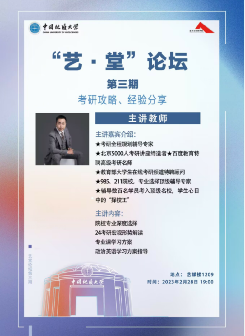 在1209会议室召开了本学期第三期“艺 堂”考研攻略、经验分享专场讲座。海文考研讲师杨剑峰做本次报告,H小说