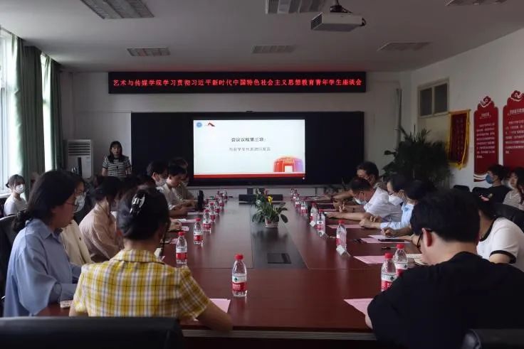 与会人员集体观看了学习贯彻习近平新时代中国特色社会主义思想主题教育工作会议的视频,与会的青年学生代表结合自身的学习和学生工作经历,依次交流学习心得,分享自己的青春故事。