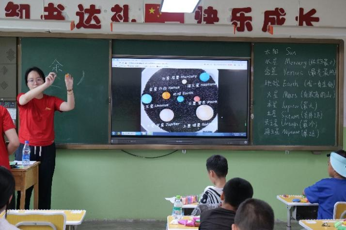 在教学中,志愿者老师将课程内容与地大地质特色相结合从而给学生带来更好的课程内容,老师们为学生们介绍了太阳系各行星的知识,并带领同学们以粘土的形式来制作太阳系七大行星的模型。九里阳光艺术支教团成员余骥飞表示“在前期课程准备中,大家一致认为可以将艺术支教课程与地大地质特色相结合来让小朋友们更好感悟地球与宇宙的奥秘,在我们通过交流后完善了这门艺术科普课程的内容”。
