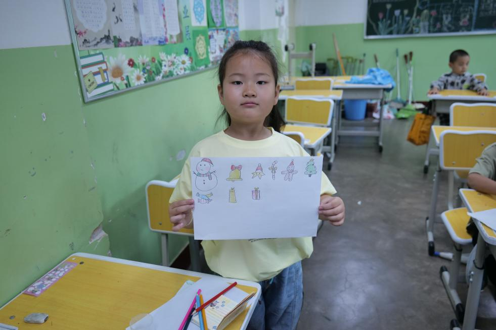 老师您教我们绘画、手工、学了“亿”点点知识。——梁佳晨