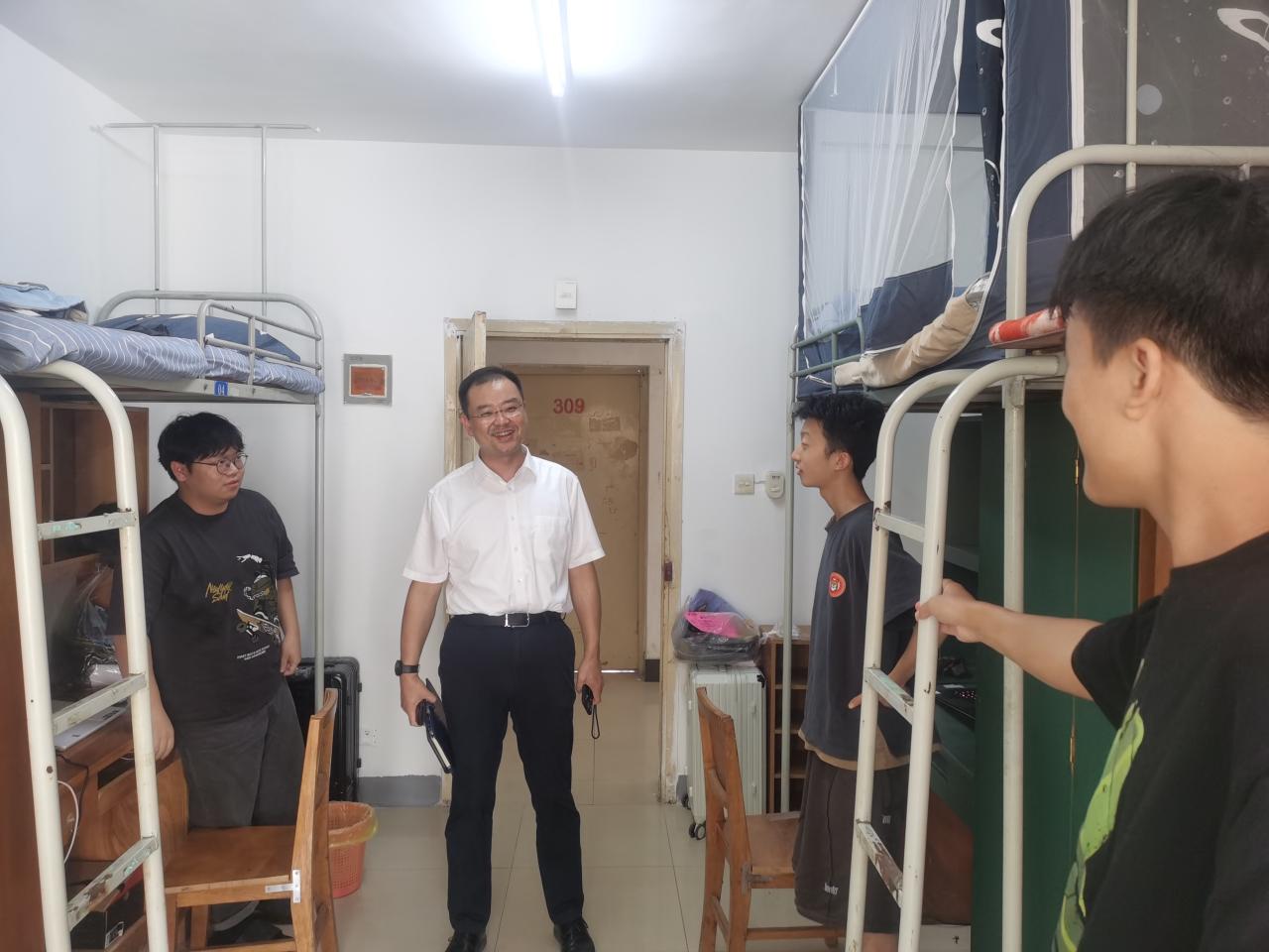 党委书记晋曦,院长何清俊,副院长张梅珍、袁玥、彭静,党委副书记边建华,学工组辅导员单湉艺、陈习良,兼职辅导员杨滢、包颜铭、于梦涵走访了学院研究生和本科生新生宿舍,亲切看望并慰问了学院2023级新生。