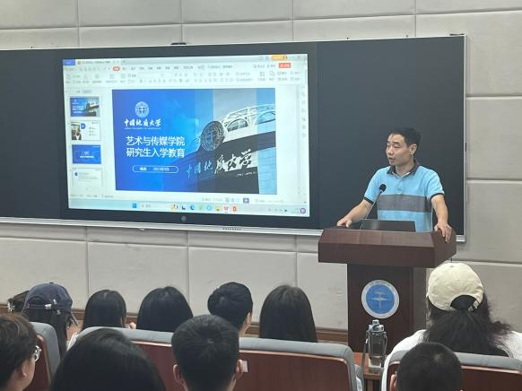 于9月8日全天在艺媒楼1104开展“研途启航”入学教育。副院长彭静、党委副书记边建华、研究生辅导员单湉艺、党建办公室主任陈习良、研究生教学秘书喻硕及全体2023级研究生参加此次会议,会议由研究生辅导员单湉艺主持。