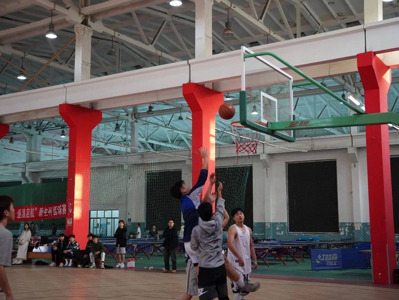 2023“新生杯”篮球赛于北区体育馆举行,第一场比赛由来自学院的研究生代表队作战大一代表队,裁判由篮球裁判社成员担任,学工组辅导员曾戈晖到场观赛。