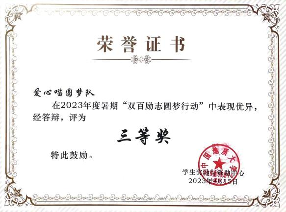 此外,郭嘉鑫、张婷婷同学还参加了“双百励志圆梦行”活动,她们走访了辽宁、孝感多地,为经济困难生送去温暖,带去学校的关怀,进一步提高了H小说