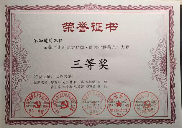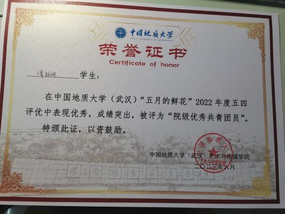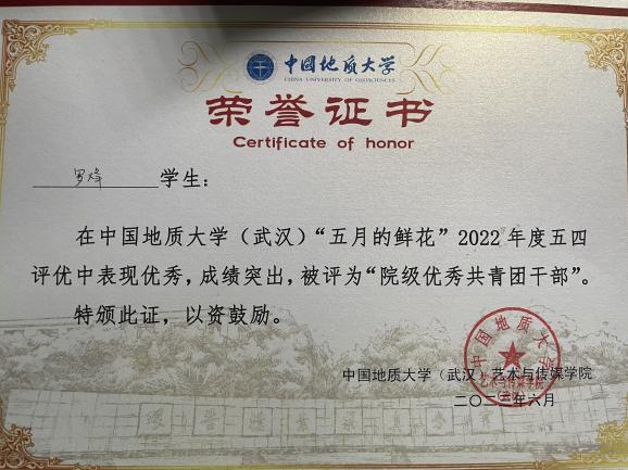 班委们分工明确,各司其职,精诚团结,始终坚持解放思想、实事求是、与时俱进的精神。我们认真研究新情况,探索新办法,创造性地开展工作,不断增强支部的凝聚力和战斗力。在2023年度五四评优中,郭嘉鑫同学被评为“校级优秀共青团员”,王蓉蓉、罗烽和张灯同学被评为“院级优秀共青团干部”,谭颖迪、肖怡柳、张曼莎同学被评为“院级优秀共青团员”。