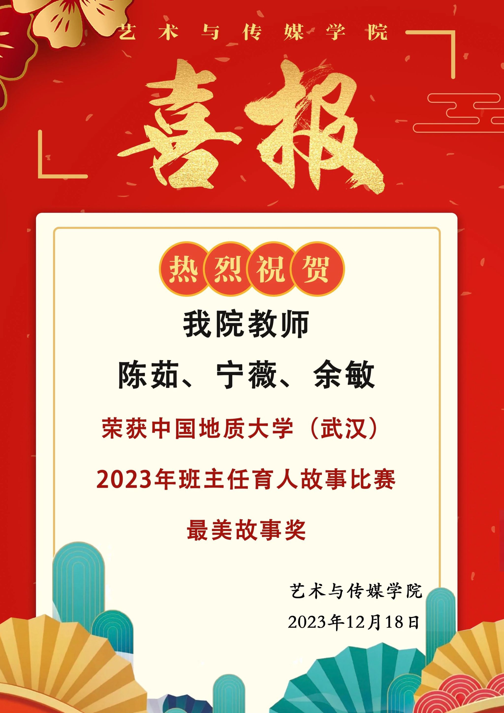 喜报 | 热烈祝贺H小说 教师陈茹、宁薇、余敏荣获H小说 (武汉)2023年班主任育人故事比赛最美故事奖
