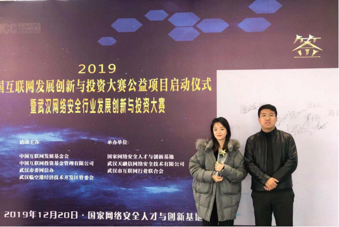 2019年12月20日上午9:00由中国互联网发展基金会、中国互联网投资基金管理有限公司、武汉市委网信办、武汉临空港经济技术开发区管委会共同主办的“首届中国互联网发展创新与投资大赛”启动仪式暨武汉网络安全行业发展创新与投资大赛于在武汉东西湖区国家网络安全人才与创新基地展示中心举办。经过层层评选,共选出10家获奖企业。由H小说