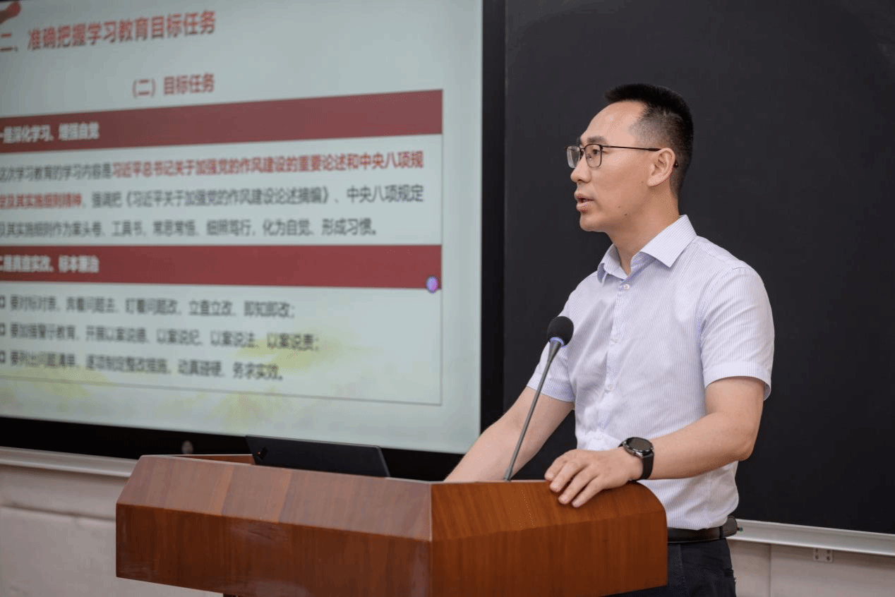 最后,院党委书记冷再心以“深刻认识、常抓不懈,深入贯彻落实中央八项规定精神”为主题讲授专题党课并作总结讲话。他系统梳理了中央八项规定精神的历史沿革,深入解读了违反八项规定精神的具体表现,阐释了以作风建设推进学院改革发展的新要求。他强调,一要提高站位,强化纪律意识,坚定理想信念,以更严要求投身学院改革实践;二要立足岗位,聚焦主责主业,主动担当作为,以更高的标准投身学院改革发展;三要严肃监督执纪,持续巩固党纪学习教育成果,在“常和长、严和实、深和细”上下功夫,推动中央八项规定精神学习教育走深走实。