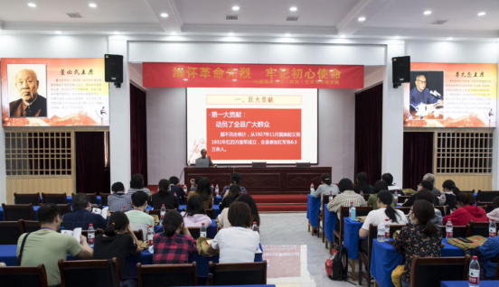 原红安县党史办主任彭希林给教职工党员上精彩党课