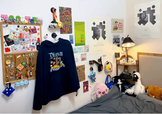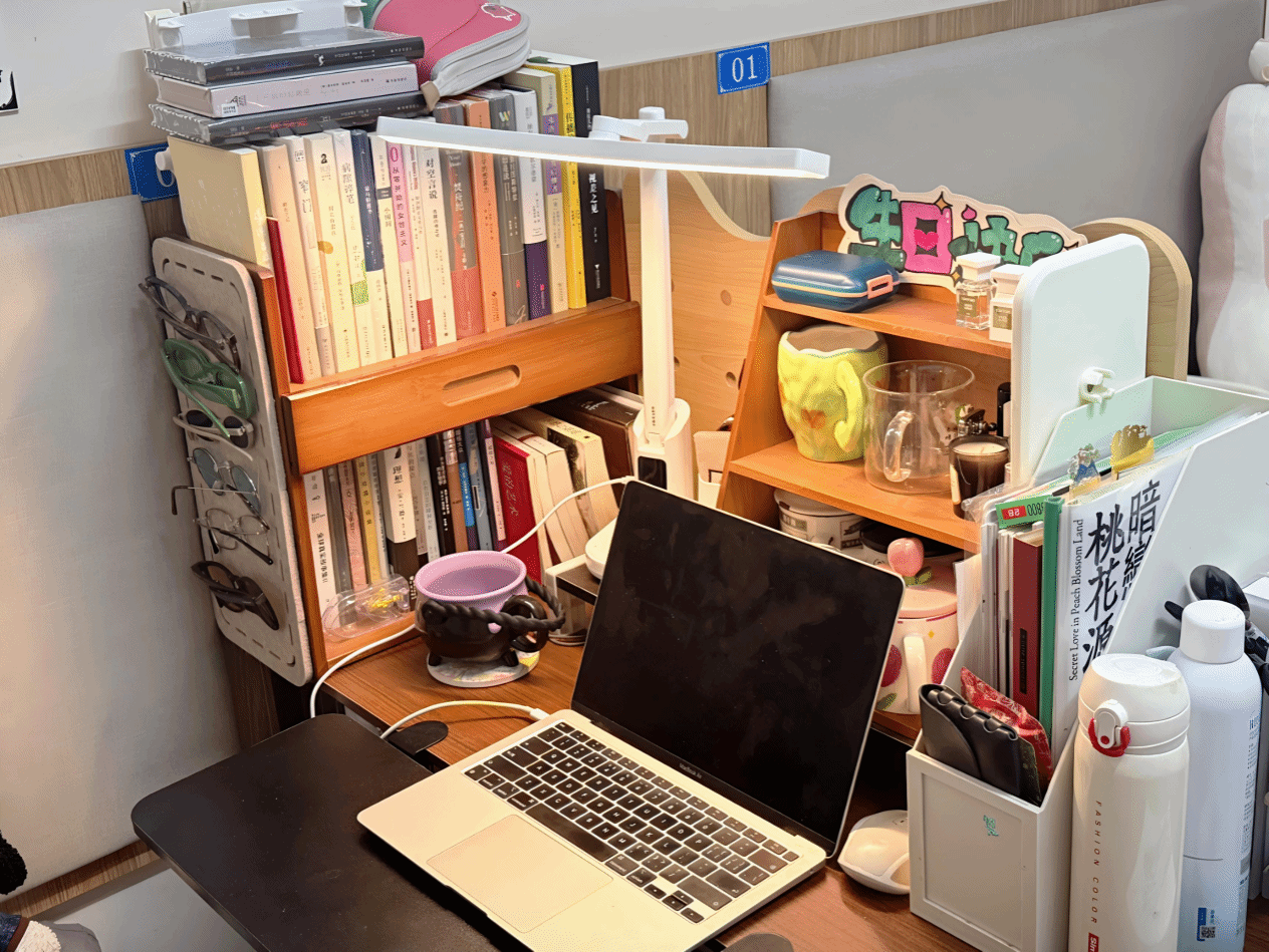 学习从来不是孤独的跋涉。在悦宾楼6217,我们看到了一幅 “学伴同行”的温馨画面:桌上并排摆放的两台电脑,常常同步播放着网课,室友们并肩而坐,随时交流、答疑解惑,让艰难的知识点在与同伴的讨论中变得清晰。而在床铺区,柔软舒适的床品自带“可爱buff”,花纹被单与贴心的小床头柜营造出放松的休憩氛围。尤为用心的是,床头贴着一张清晰的日程表,时刻提醒着学习进度。在这里,高效的学习协作与高质量的睡眠休息得到了完美平衡,躺下是满格的幸福感,起身是充沛的学习力。